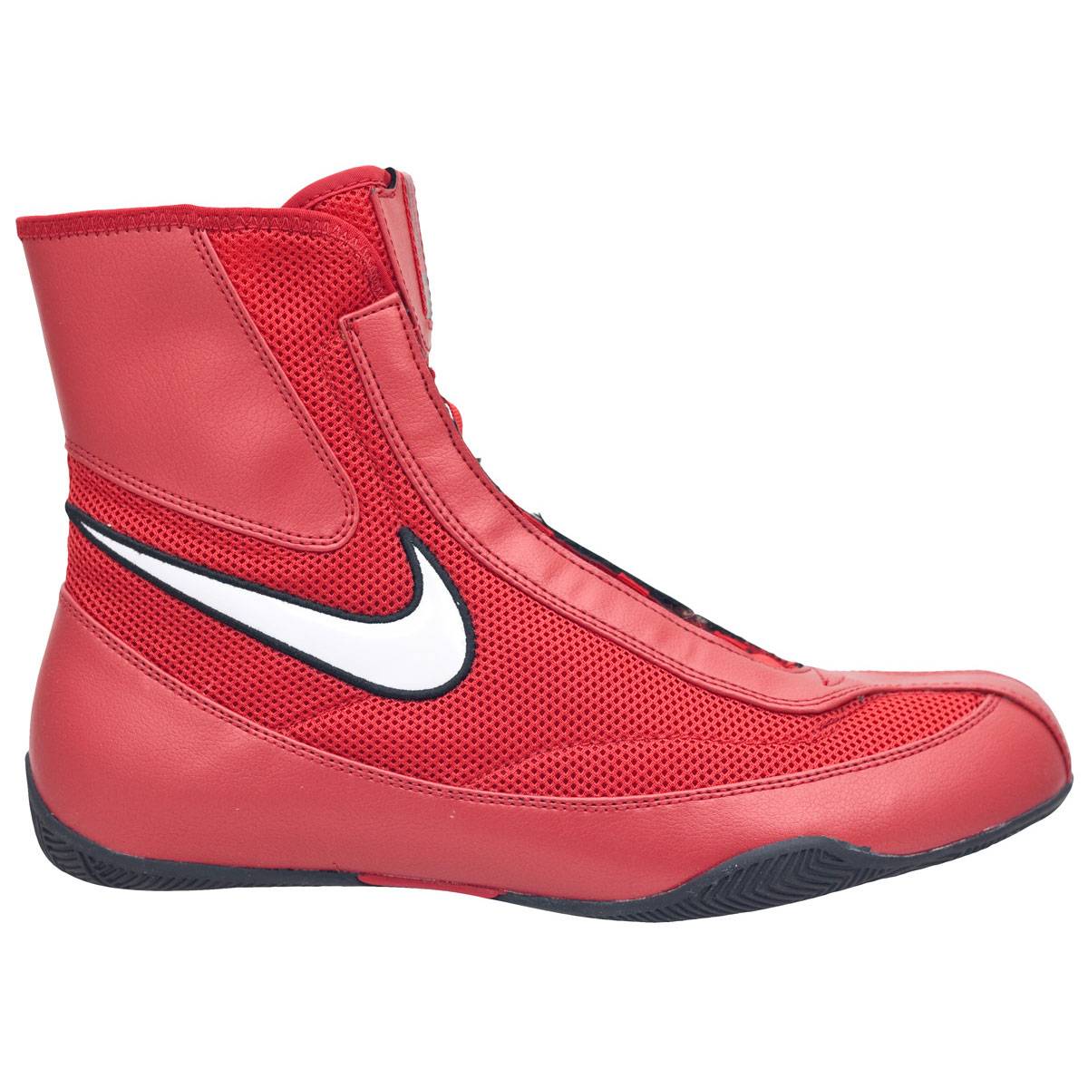 Боксерки NIKE OLY MID являются одними из лучших, разработанных для профессиональных бойцов и призванных обеспечить маневренность, быстроту и скорость передвижения по рингу. Модель имеет правильную, анатомическую конструкцию, которая способствует большей амплитуде движения и легкому сгибанию ноги. Верхняя часть в предлагаемой модели выполнена из легкой, нейлоновой сетки, которая создает отличную воздухопроницаемость, а так же обладает великолепной мягкостью, эластичностью и прочностью, и призвана снизить вес боксерок. Несущие элементы верха, которые подвергаются максимальным нагрузкам при активном движении, выполнены из облегченного, синтетического материала, что обеспечивает дополнительную прочность модели. Специальная жесткая вставка, идущая от пятки к лодыжке, способствует дополнительной фиксации голеностопного сустава. Голень высотой 7″ (18 см) и плотная шнуровка снижают риск травм при энергичном движении. Внутренний язычок имеет специальную конструкцию, которая позволяет зафиксировать язычок шнуровкой и исключает его смещение, а так же скрывает и фиксирует узел шнуровки и свободные концы шнурков, предотвращая их самопроизвольное развязывание. Промежуточная подошва выполнена из легкого, упругого материала Phylon, который эффективно амортизирует ударную нагрузку, воздействующую на голеностопный сустав и ногу при передвижении по рингу. Внешняя подошва, изготовленная из высокопрочной, устойчивой к истиранию резины, обеспечивает уверенное сцепление с полом. Канавка на подошве в месте анатомического сгиба стопы сохраняет естественность движений стопы. Вес 266 грамм.