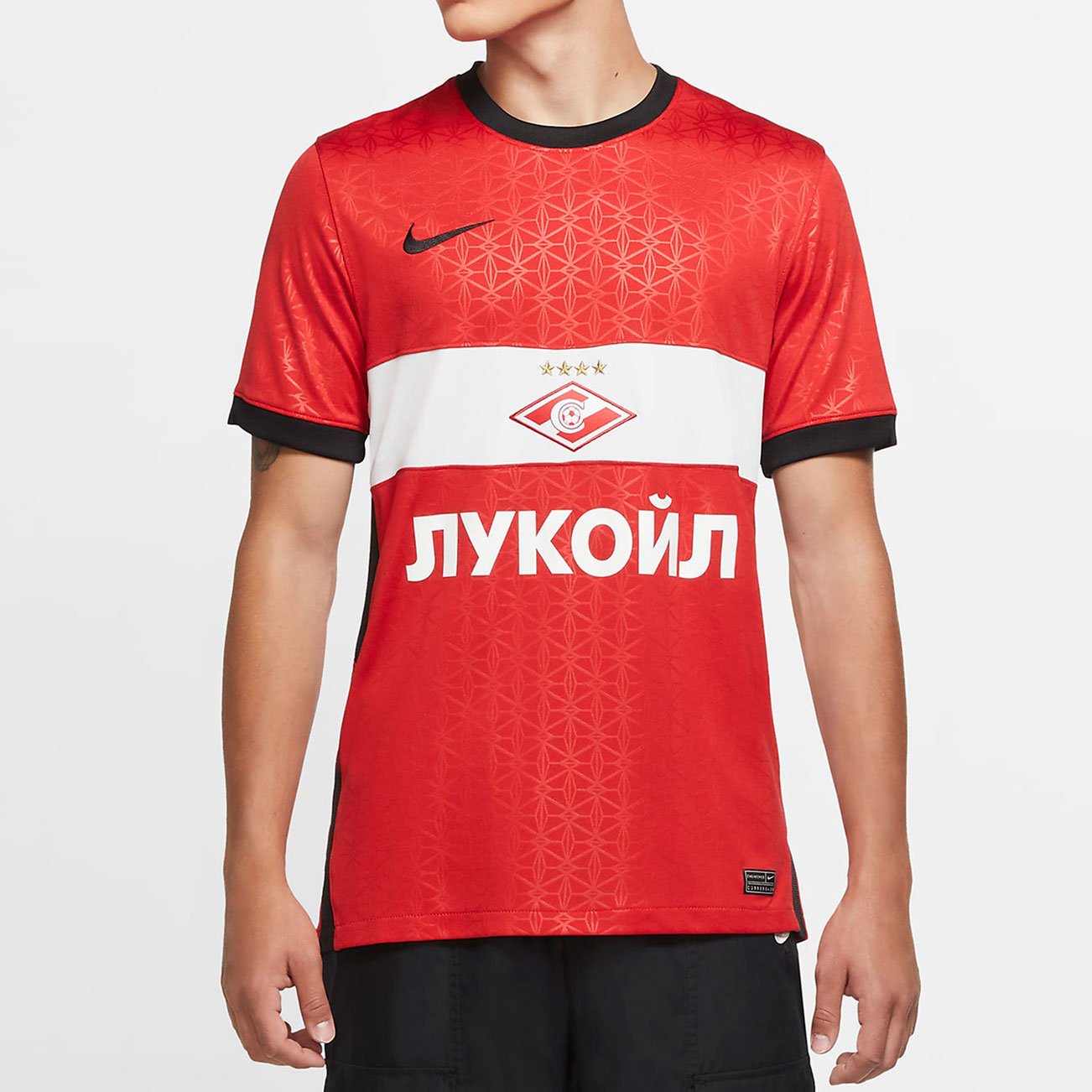 Джерси из домашней формы ФК «Спартак» демонстрирует всем твою поддержку команды. Дышащая ткань из переработанных материалов отводит влагу от кожи, помогая сохранять ощущение комфорта на поле и на трибунах. Продукт на 100% выполнен из переработанного полиэстера.