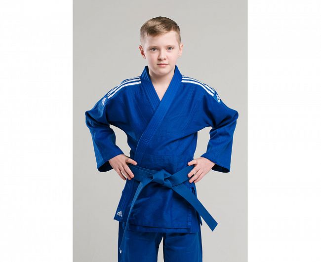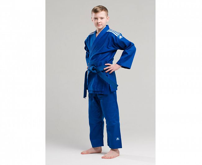 Кимоно для дзюдо adidas Club Синее J350. Тренировочная кимоно для дзюдо adidas Club — это универсальное кимоно средней плотности весом 350 gs/m2. Сделано из смеси полиэстера и хлопка. Хлопковые волокна, укрепленные полиэфирными нитями, обладают повышенной прочностью и лучше выводят влагу. Таким образом, кимоно дольше служит. Подходит для детей и начинающих спортсменов. Состав ткани: 60% хлопок, 40% полиэстер. В брюках кулиска+резинка только в размерах до 150 см. *Кимоно идет без пояса. Пояс продается отдельно. Тренировочное кимоно. Плотная, гибкая и прочная ткань. Плотность 350 gm/m2. Пояс на штанах на резинке +кулиска. Три черных полоски на плечах. Материал: 60% хлопок, 40% полиэстер Combatmarkt является официальным партнером Федерации Дзюдо России.