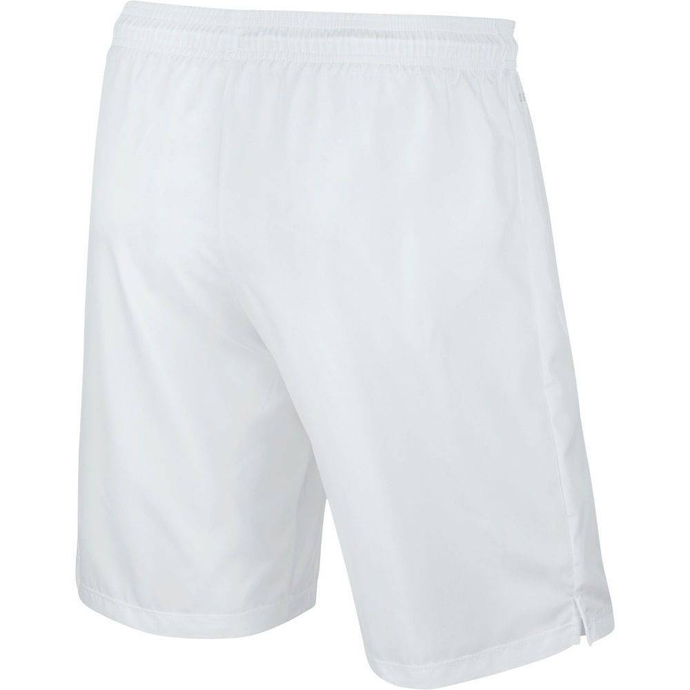 Стильные игровые трусы для футболистов, .юношеская модель NIKE LASER WOVEN III SHORT NB 725986-100 JR выполнены из материала белого цвета со стильным логотипом производителя контрастного черного цвета. Трусы имеют аккуратный внешний вид и отлично смотрятся на теле футболиста во время игры. За счет применения прямого классического покроя с прямыми штанинами, шорты удобно сидят на фигуре, не перекручиваются и не смещаются. На талии прочно фиксируются при помощи эластичной резинки, которая вшита в поясе. Пошиты из современного качественного материала, в состав которого входит полиэстер, волокна которого придают ткани высокую прочность. Материал хорошо держит форму, не вытягивается, после деформаций всегда возвращается в первоначальное состояние. Ткано хорошо пропускает свежий воздух, что обеспечивает отличный воздухообмен и снабжает кожу достаточным количеством кислорода. При производстве применяется специальная технология Dri-FIT, которая обеспечивает впитывание пота с поверхности тела и обеспечивает отвод на наружный слой, где происходит его испарение. Такие шорты подойдут для занятий футболом или для других активных видов спорта, они так же могут использоваться в повседневной активной жизни.