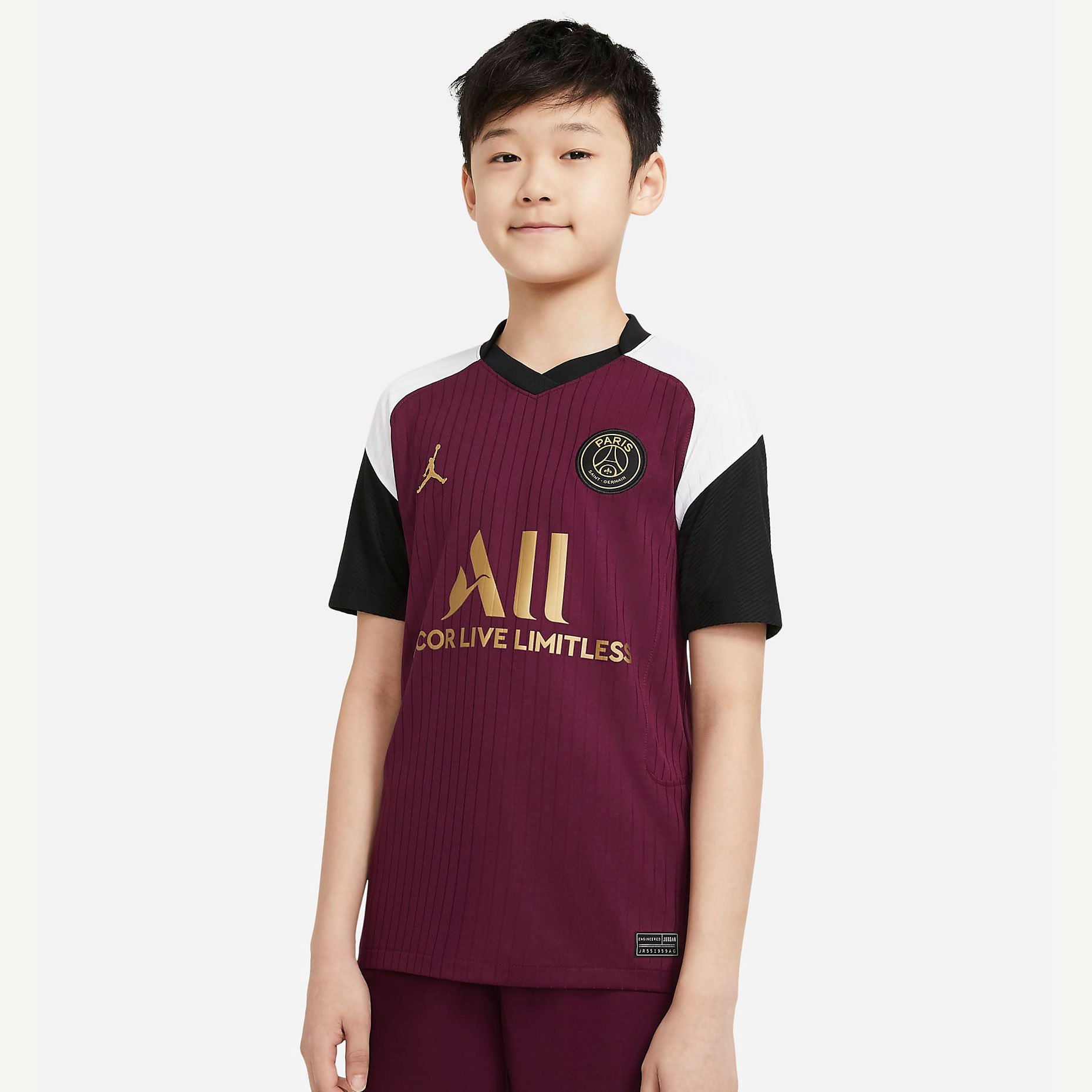 Выездная детская игровая футболка Jordan ФК «Пари Сен-Жермен» 2020/21 (ПСЖ/PSG) 3-й комплект