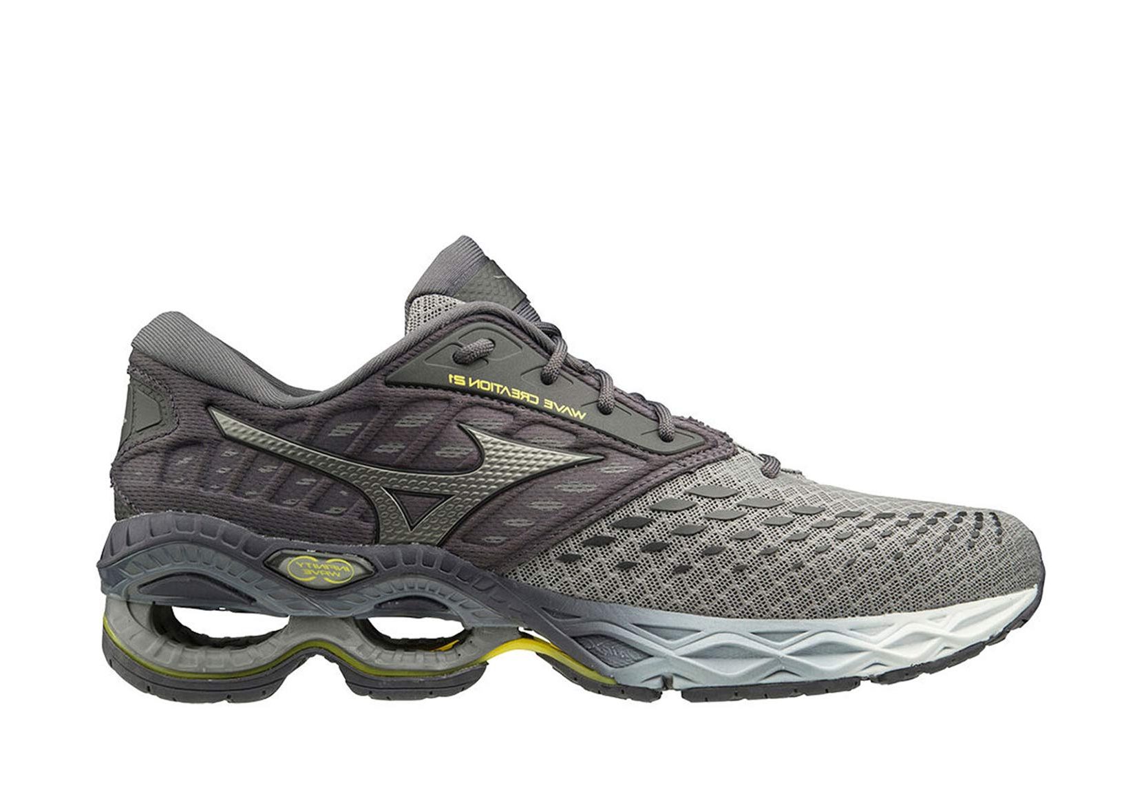 JJ1GC2001 03 Wave CREATION 21 Кроссовки объединяют в себе комфорт и отзывчивость по всей длине подошвы, чтобы Вы смогли превзойти свои результаты. Данная обувь отлично подойдет как профессионалам, так и начинающим бегунам, нуждающимся в максимальной амортизации, которая защитит опорно-двигательную систему от негативного воздействия ударных нагрузок. Также, кроссовки Mizuno Wave Creation 21, отлично подойдут для тренировок на жестком покрытии (асфальт, бетон, беговая дорожка). Технологии U4icX и Infinity Wave обеспечивают непревзойденный комфорт и мягкую посадку.